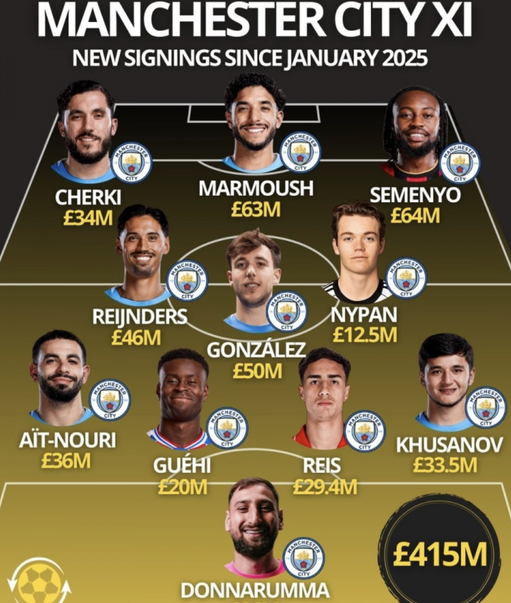 尽管身背115项财政指控,财大气粗的曼城在转会市场上依旧挥金如土。在敲定格伊的转会后,曼城在过去1年的时间里已经砸下4.2亿镑转会费,新援完全可以组成一套全新的首发阵容。